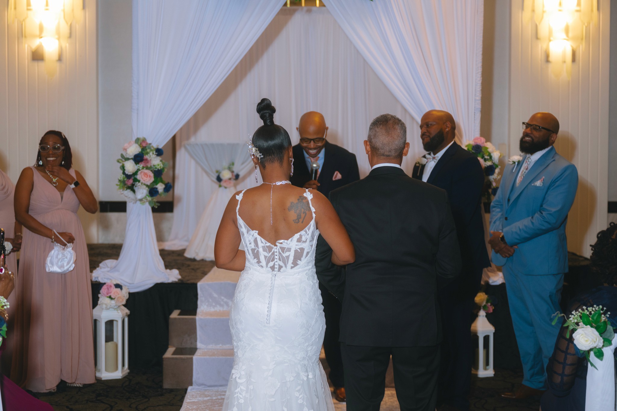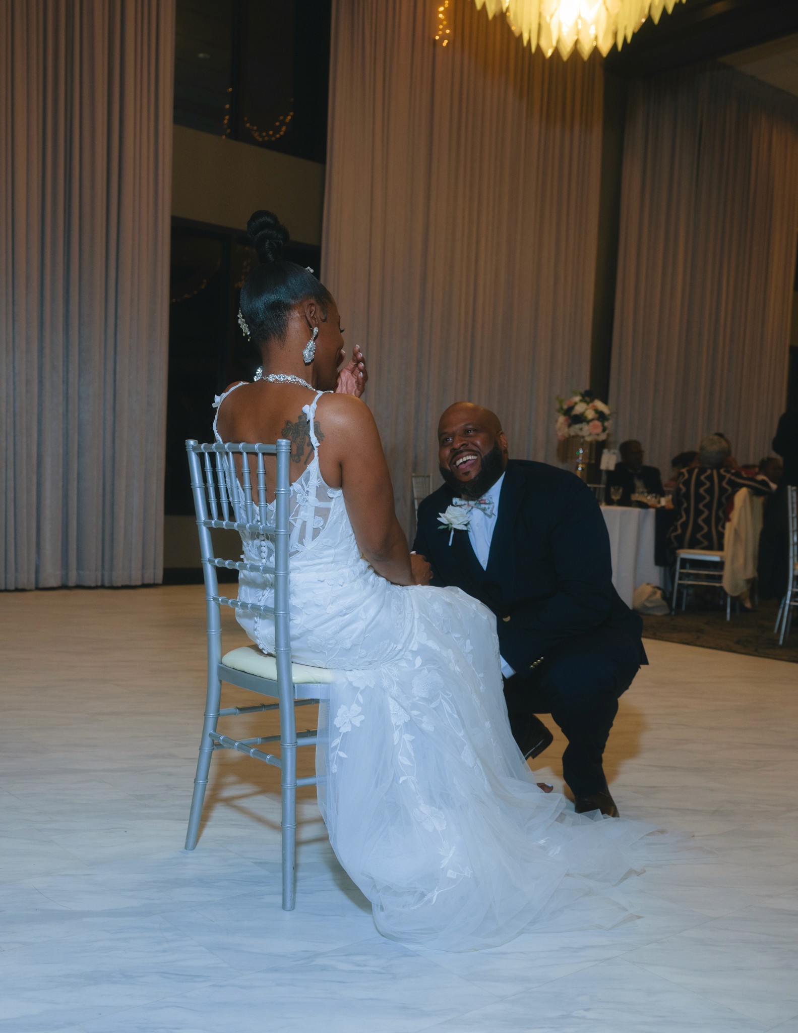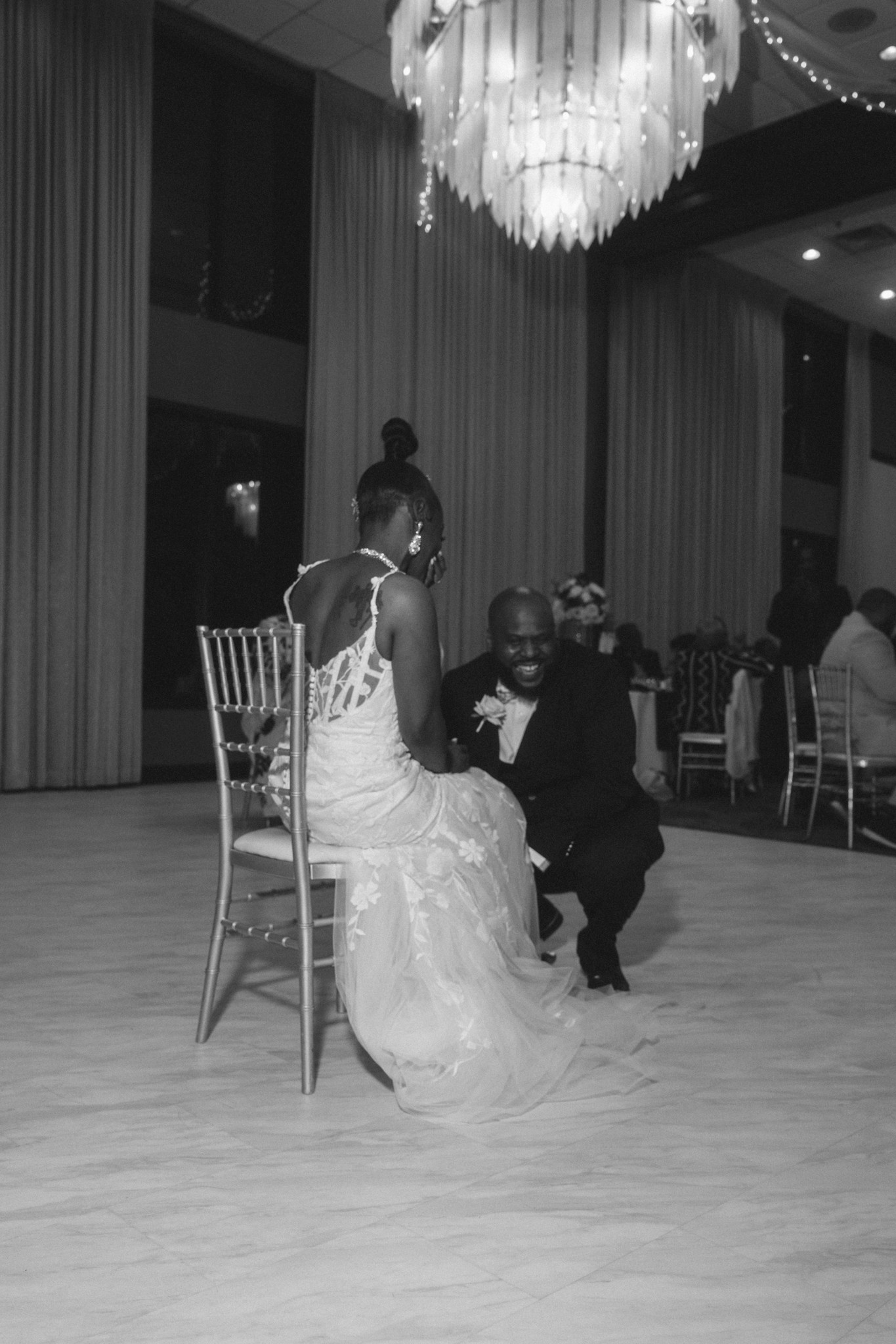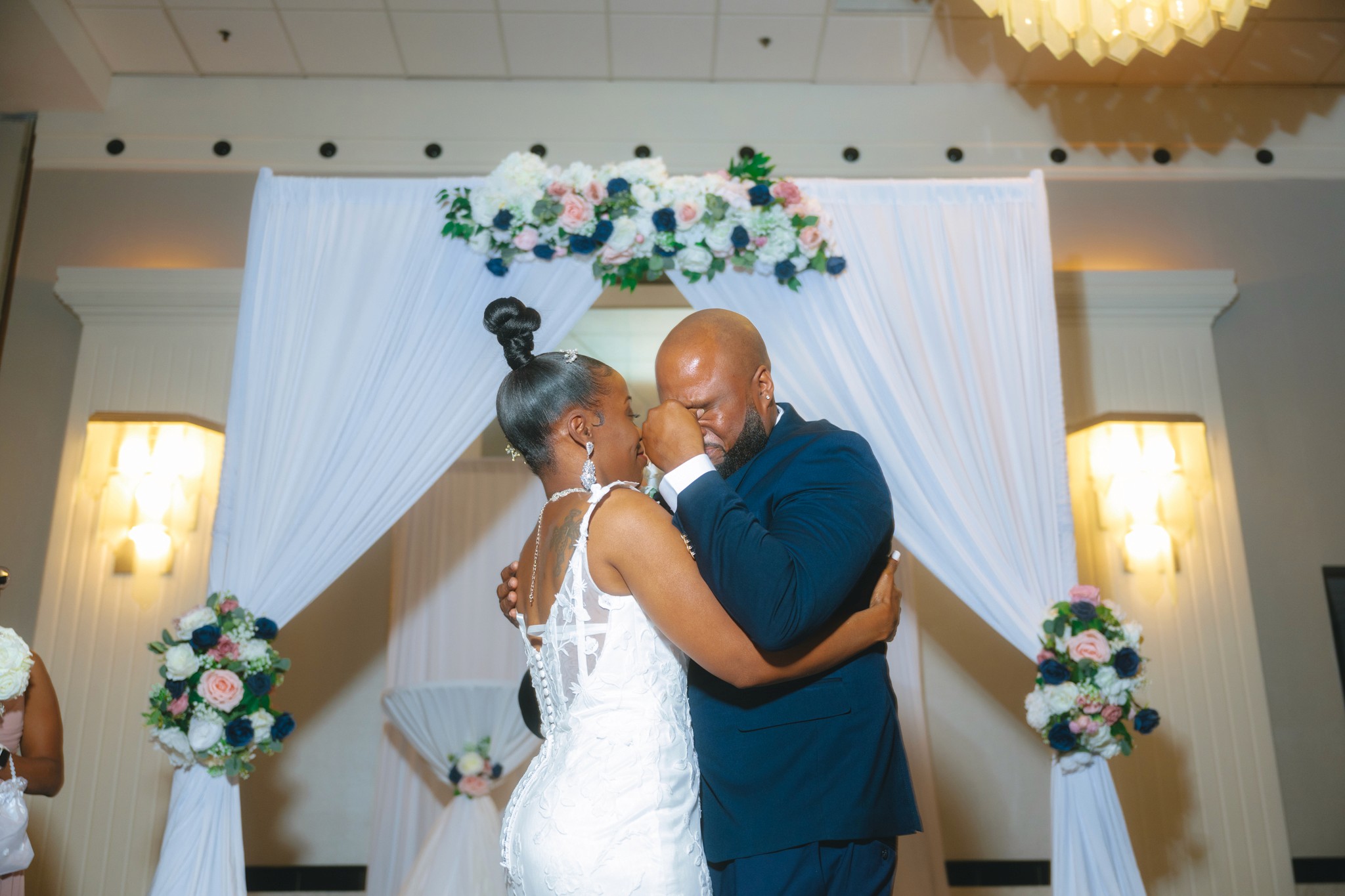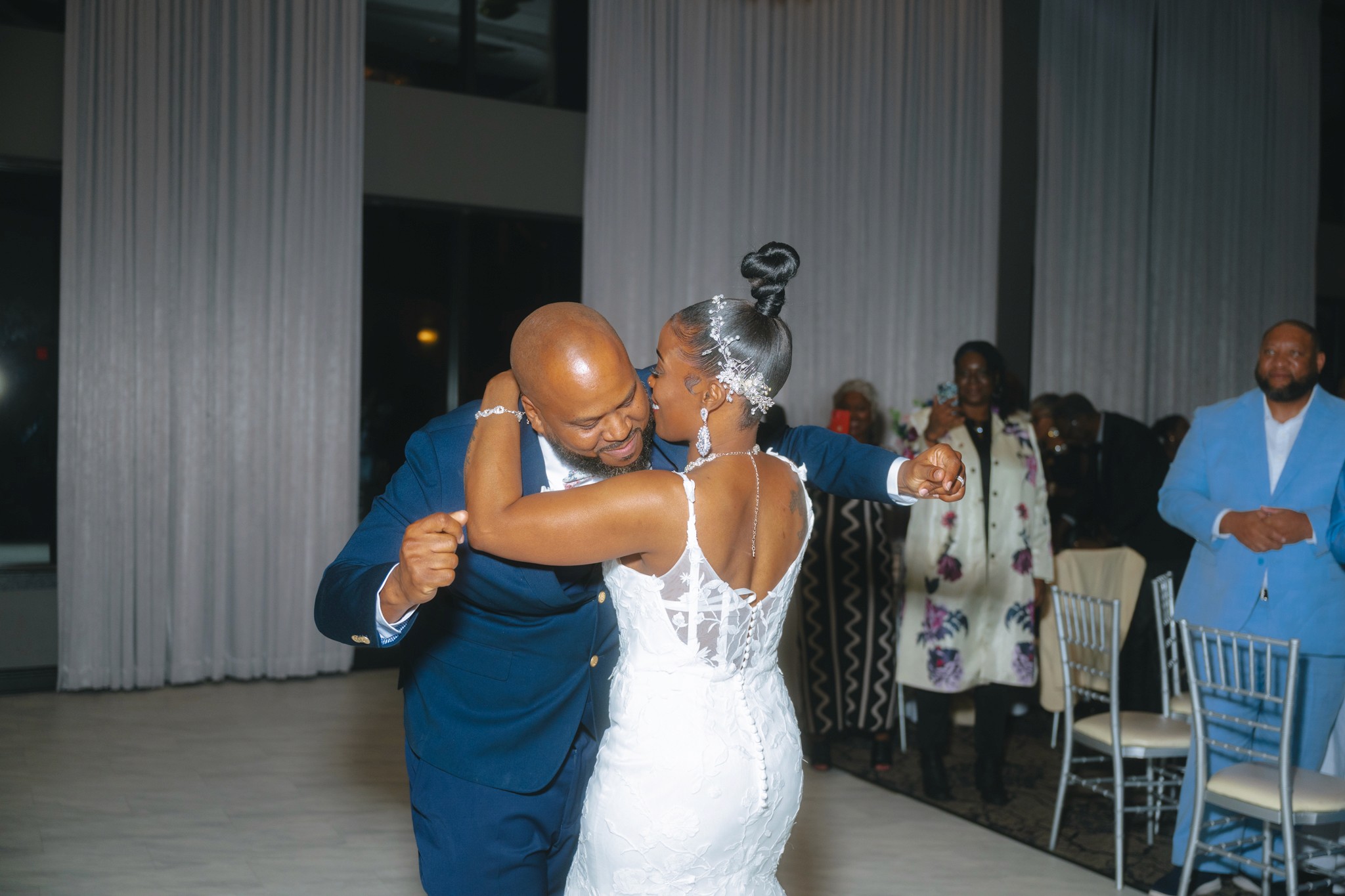 Nestled in Chicago Southland, this venue is nothing short of stunning — chandeliers glowing warmly from eighteen-foot ceilings, every detail opulent and sophisticated. The ceremony was deeply emotional, filling the room with full hearts and happy tears. And the reception brought an energy all its own — a lively, soulful blend of New Orleans and Chicago that kept everyone celebrating until the very end. This was a wedding that was as beautiful to feel as it was to photograph.