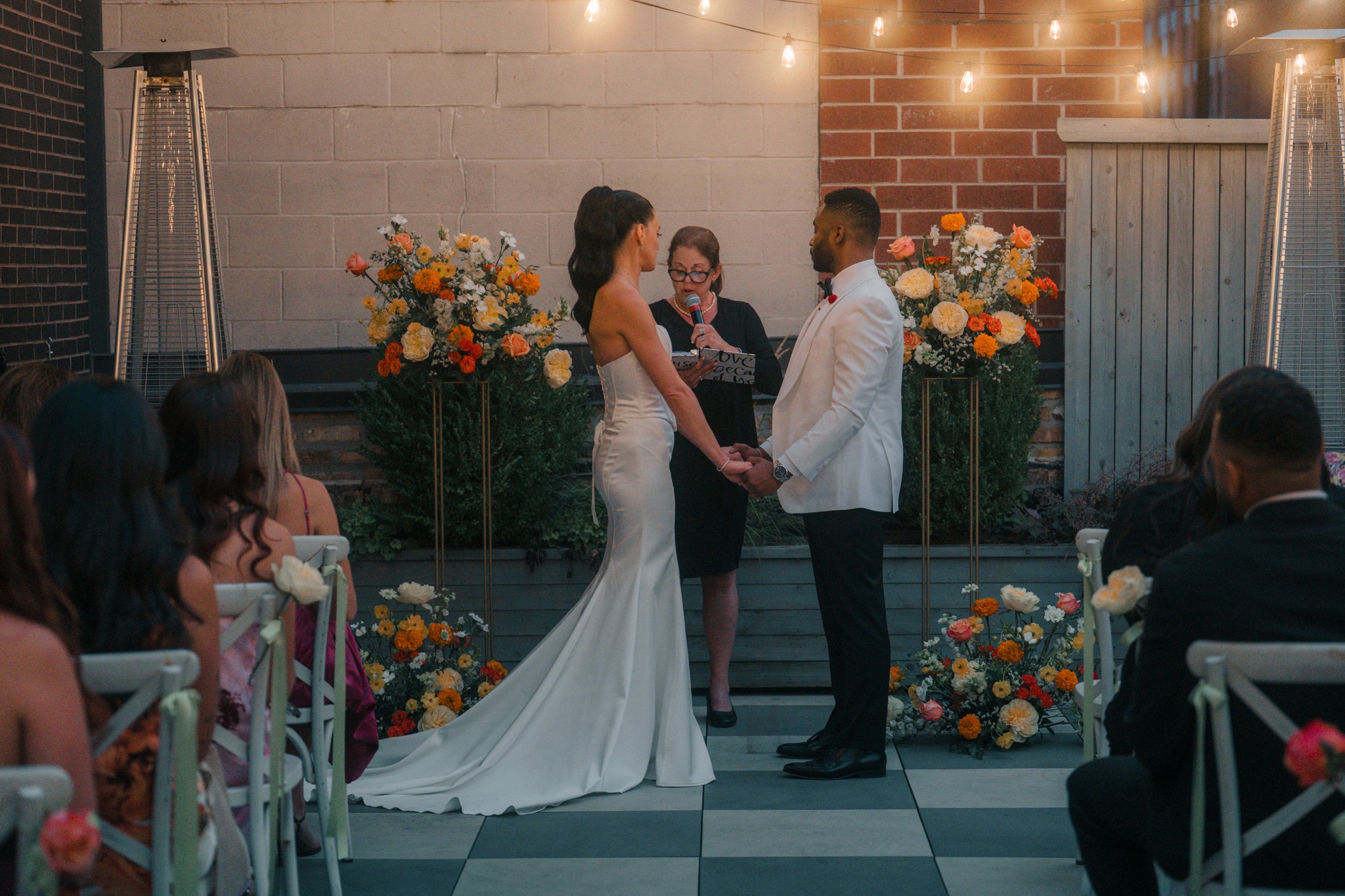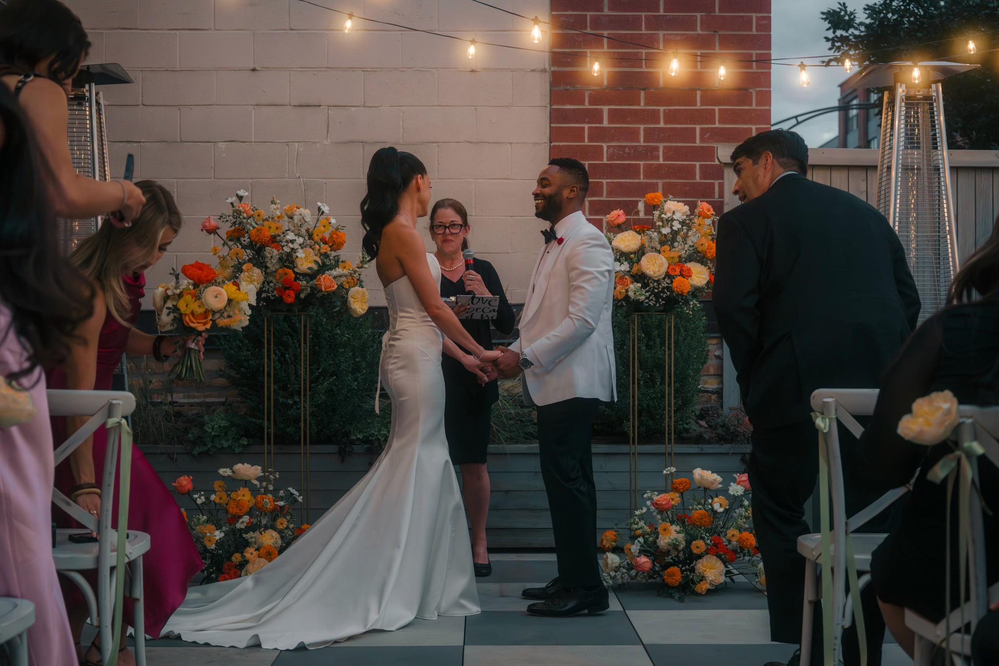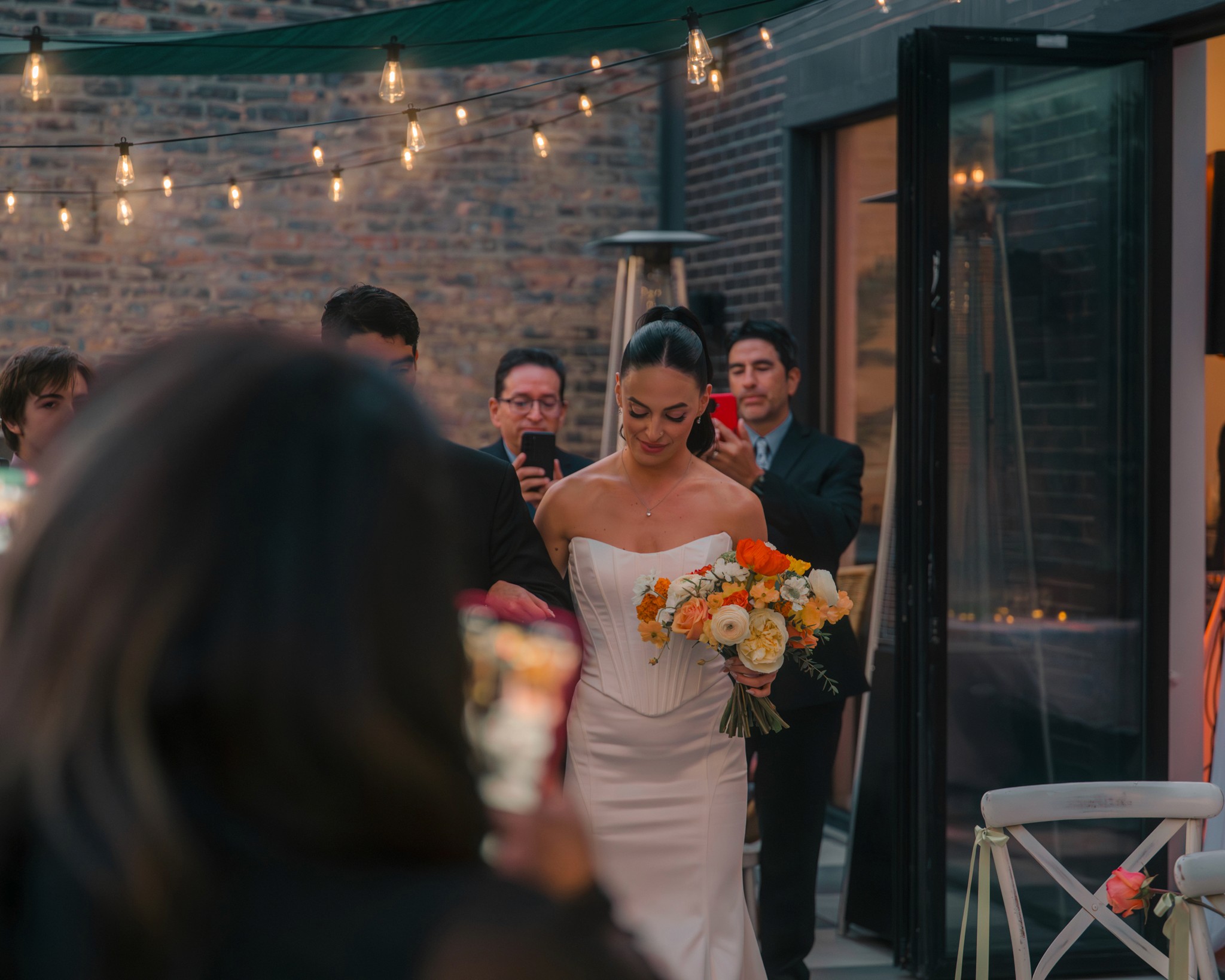 Perched atop the vibrant bixi beer restaurant, this rooftop venue is something truly special — a stunning atrium filled with natural light and anchored by timeless black and white marble flooring located Chicago's Logan Square neighborhood. But what made this day unforgettable wasn't just the setting — it was the people. Family and friends traveled from near and far, representing a beautiful tapestry of cultures, backgrounds, and love, all gathered in one place to witness Isabella + Malcolm's union. Chicago's energy, Logan Square's charm, and a room full of diversity and joy — this was a wedding that celebrated love and community.