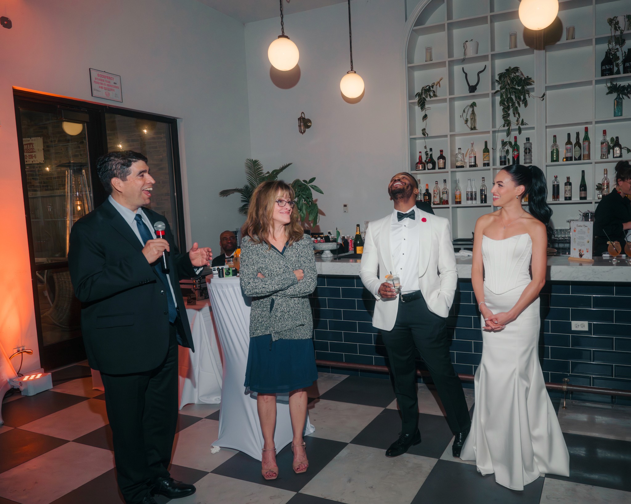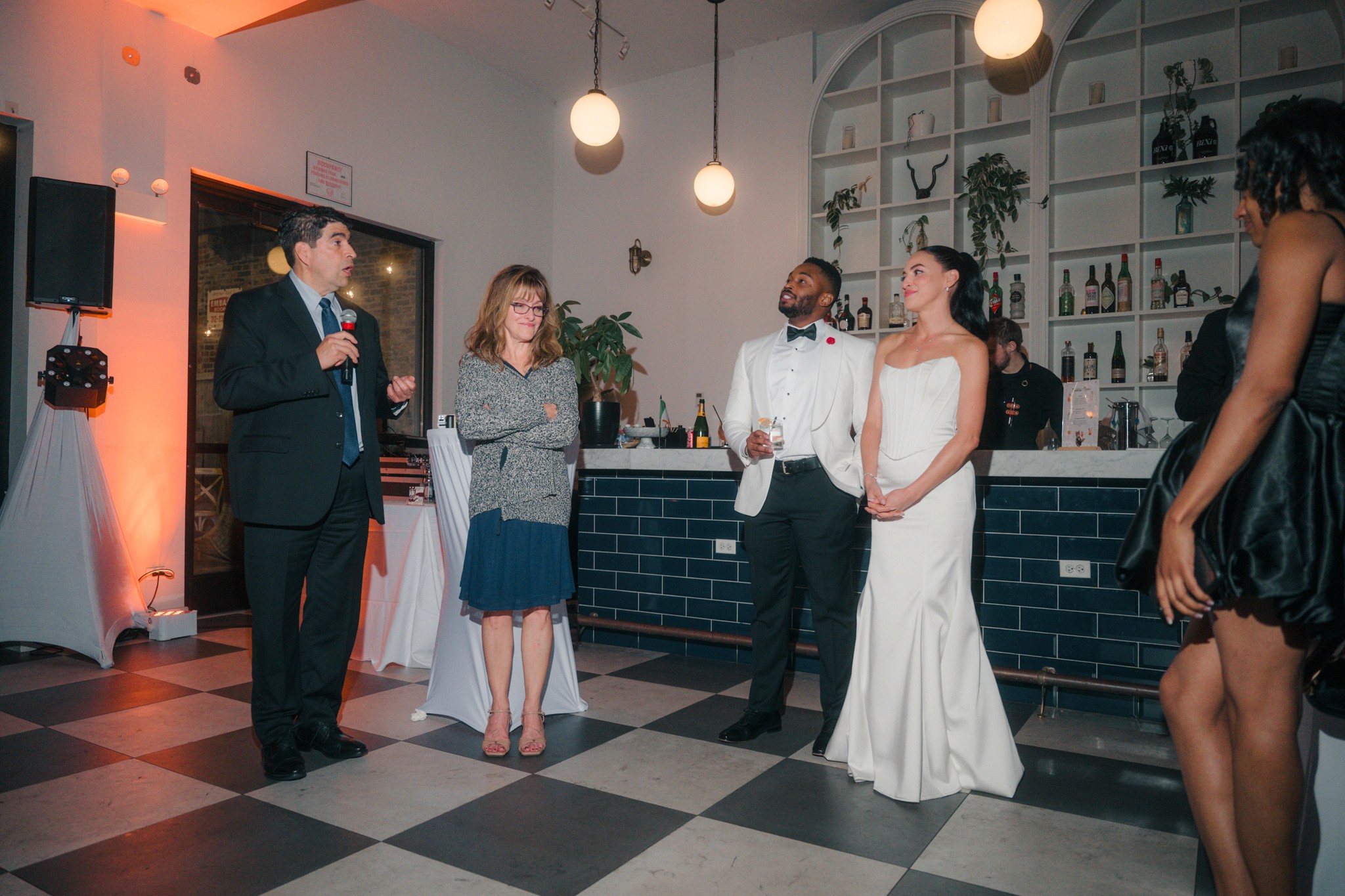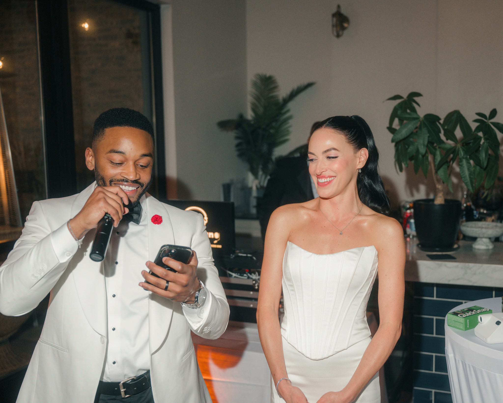 Perched atop the vibrant bixi beer restaurant, this rooftop venue is something truly special — a stunning atrium filled with natural light and anchored by timeless black and white marble flooring located Chicago's Logan Square neighborhood. But what made this day unforgettable wasn't just the setting — it was the people. Family and friends traveled from near and far, representing a beautiful tapestry of cultures, backgrounds, and love, all gathered in one place to witness Isabella + Malcolm's union. Chicago's energy, Logan Square's charm, and a room full of diversity and joy — this was a wedding that celebrated love and community.
